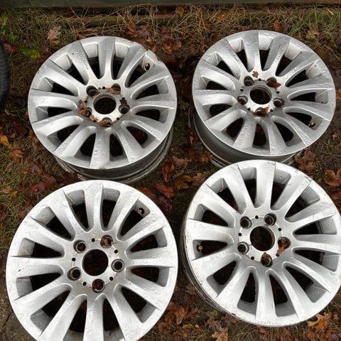 5 x originale BMW fælge. Ingen hakker fra kantstenen på fælgene. De er i fin stand og skal lige have en tur med vand og sæbe. Dækkene er ikke noget værd. Prisen er for alle 5 fælge.