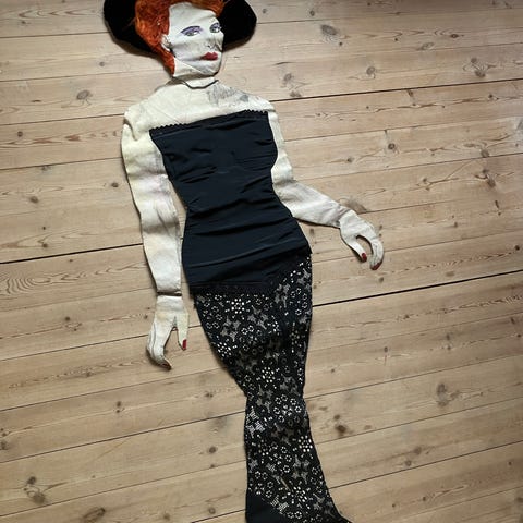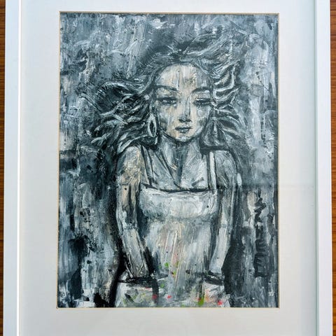 Indrammet patchwork/stofkunst af Lotte Dandanell bl.a. kendt fra Olsen Banden. Ca 18 x 20 cm. Skal hentes på Amager