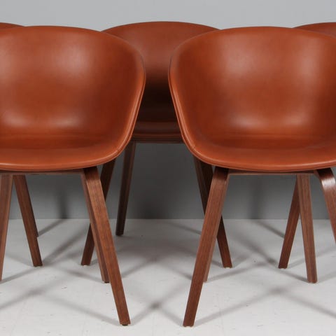 Hay AAC22 About A Chair armstole med skal af plast, nybetrukket med sort silk anilin læder. Stel af valnød. Fremstillet hos Hay. H. 82/48,5 cm. B. 60 D. 50 cm. Fremstår nybetrukket.