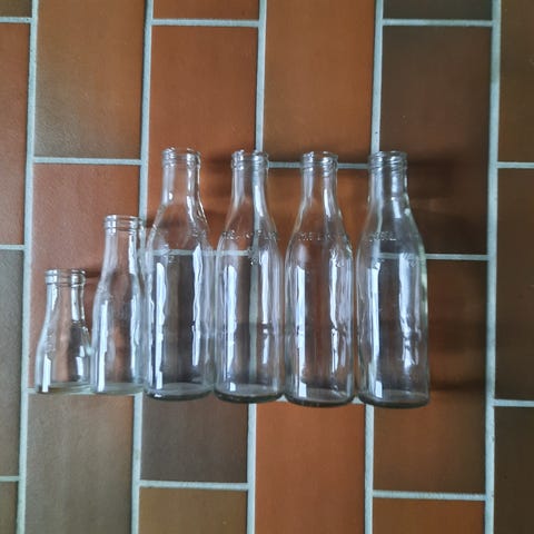 Glas, Mælkeflasker og flødeflasker, Glasflasker / saftflasker fra Holmegaard / DKF.