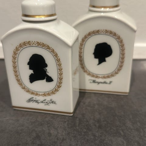 Porcelæn, tedåser, Royal Copenhagen, RC jubilæums tedåser, 2 på 11 cm, 1 med dronning Margrethe, 1 med USA's 200 års jubilæum, og en H.C. Andersen tedåse 19 cm, flotte, ingen skrammer. De små 275 kr./stk. Den store tedåse 375 kr., sælges hver for sig eller samlet, samlet pris 800.