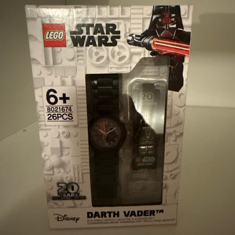 Armbåndsur børneur fra lego med star wars motiv (Darth Maul). Der følger original æske og vejledning med, samt lego led, så det kan tilpasses barnets håndled. Sælges, da sønnike for længst er vokset ud af det. Der medfølger ikke batteri.