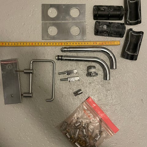 Håndklædekroge fra Vola i hvid. Uden "indmad" og med brugsspor.