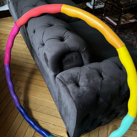Hulahopringen er 98 cm i diameter.