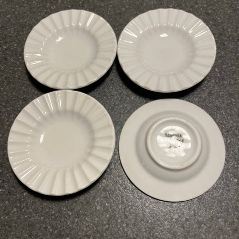 Små assistenter/askebæger 6 stk., med blomst og guldkant.