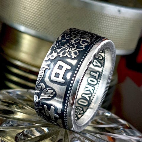 Sølvmønt lavet til fingerring. Laver den først ved bestilling. Har 5 mønter tilbage. Str. 62,5 til 74. Enkelte størrelser kan ikke laves da ringen vil se forkert ud. Meget kraftig ring ca. 20 gram