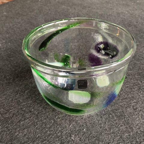 Flot stor glasskål af Aksel Østergaard Jensen i mundblæst glas.
