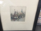 Radering, To små fine tryk fra Christianshavn med Vor Frelsers Kirke samt Holmens kirke.