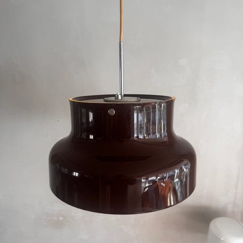 En klassiker fra 70’erne, der fortsat er meget populær. Loftslampen med samme design sælges fortsat, men det er sjældent at en standerlampe som denne er til salg.
