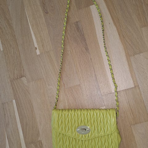 Gylden brun skuldertaske med guldfarvet detalje i et elegant og moderne design