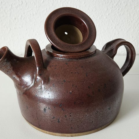 Gammel engelsk tekande med kop. Der er et minimalt afslag på tuden, det ses ikke markant.