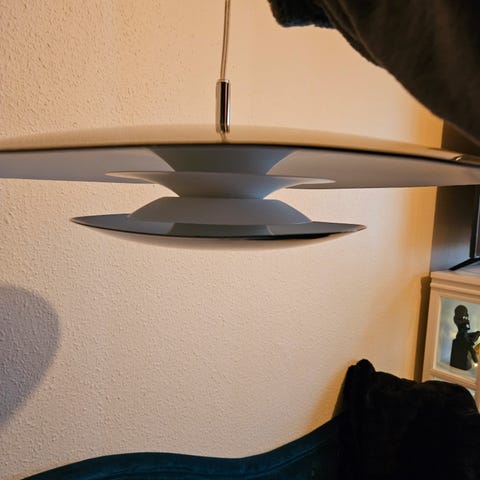 Meget elegant ellipse formet pendel. Perfekt til spisebordet eller arbejdsbordet. Lyset er som måneskin. Et fund til prisen.