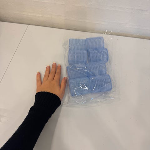 Helt ny og uåbnet pakke med 11 stk. blå flex-hårruller. Perfekte til at skabe flotte krøller og bølger uden brug af varme. Nemme at anvende og velegnede til forskellige hårtyper.