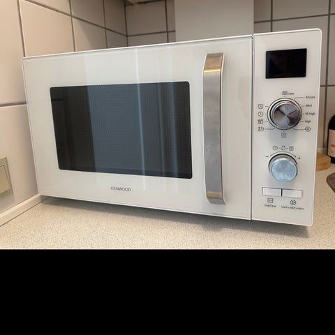 Kenwood microbølgeovn med integreret varmlufts- og grillfunktion. 23 liter. Skal have ny pære. Udvendige mål: 30(h) 51(b) 46(d).