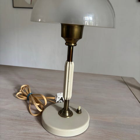Fatningen er knækket og der er kommet maling på lampen og ledningen.