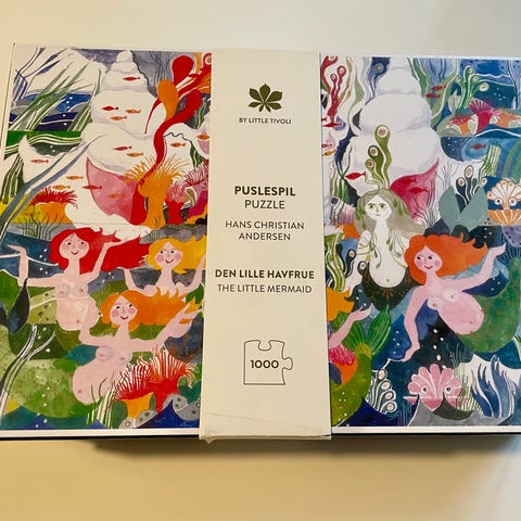 Komplet puslespil med 1000 brikker fra TIVOLI 🎡🎢 Motiv af ‘Kejserens nye klæder’ (Modellen er udgået).