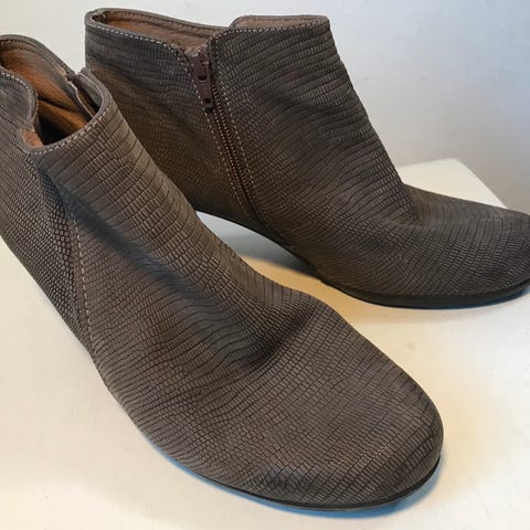 Brune støvletter i læder med grøn inderside og lidt grønt foran.