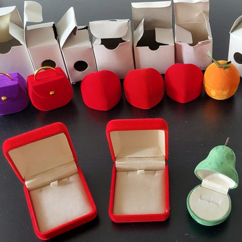 Der er 2 lommer i siderne og rullerne i midten kan tages af og på ift opbevaring af ringe og øreringe.