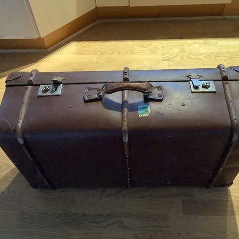 Gammel kuffert med træ ramme fin stand evnt til montering på veteran bil