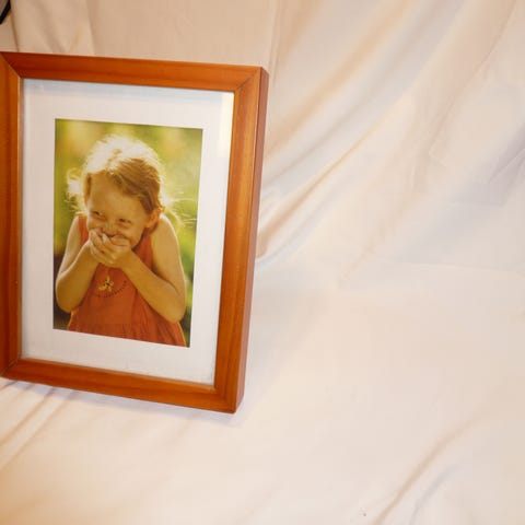 En lille ramme, der har lidt ridser/skrammer på forsiden.