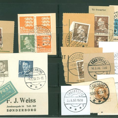 5 stk. postkort med brotypestempler fra Præstø og Nykøbing Jyll. 1908. Alle kort er ankomststemplet i Tappernøje, hhv. 6.5.1908, 4.6.1908, 3.7.1908, 25.9.1908 og 26.9.1908. Sendt til "Lisbethsminde" i Sjolte pr. Tappernøje.