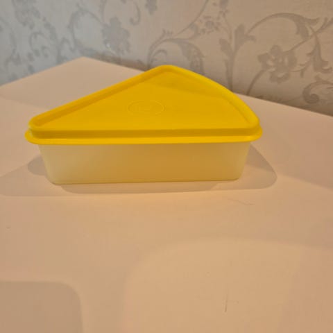 Tupperware trekant bøtte perfekt til oste. Kommer fra røg- og dyrefrit hjem.