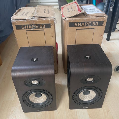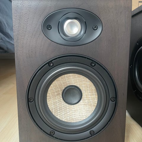 Jeg sælger mine 2 Focal Profile 918 assymetriske høje og kraftige højtalere. Farven er Diamond black (sort pianolak). Der har været passet virkelig godt på dem, og de fremtræder fraset et lille diskret hul i stoffet på den ene højtaler (se foto) faktisk som spritnye.