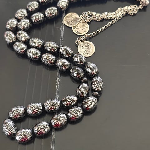 Orijinal Fil Dişi Tespih kolyeden traşlı, imame hitame kalem işçilikli.