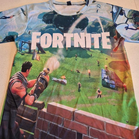 Hvid T-shirt med et stort Fortnite Llama print på forsiden. Str 12 år.