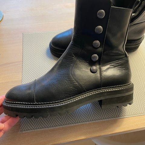 Lille ubetydelige ridse på højre støvlesnude. Brugt en gang - pris 300,- sender gerne køber betaler porto.