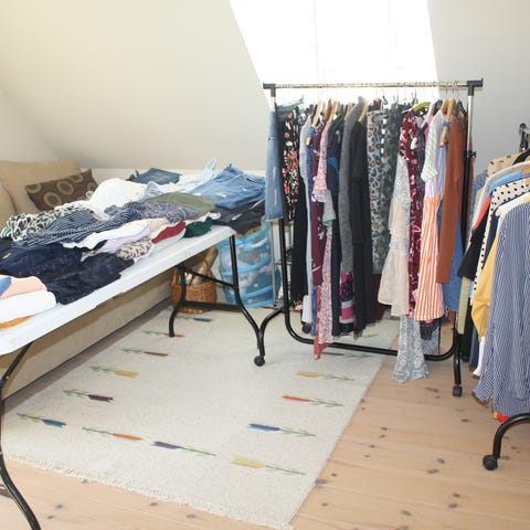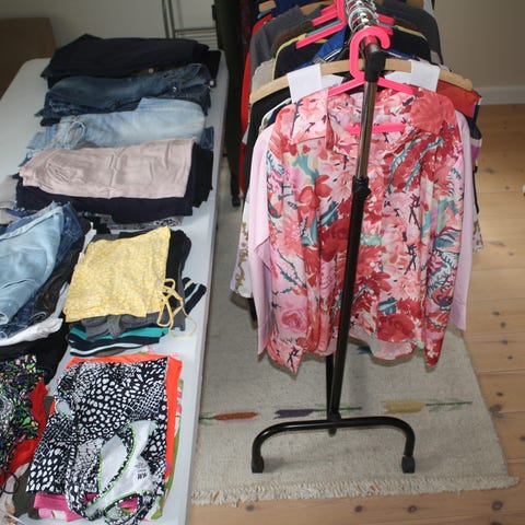 Masser af dametøj, sko, porcelæn mm