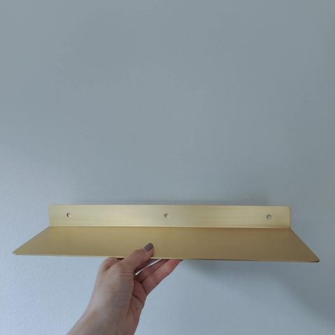 Ekstra Lang hylde med 3 messingholdere. Skruer følger med. Flot farve