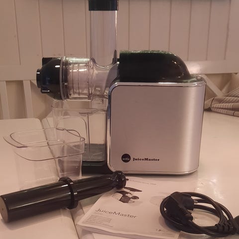 Solid kværn der presser skånsomt og bevarer flere vitaminer og mineraler. Nem at rengøre.