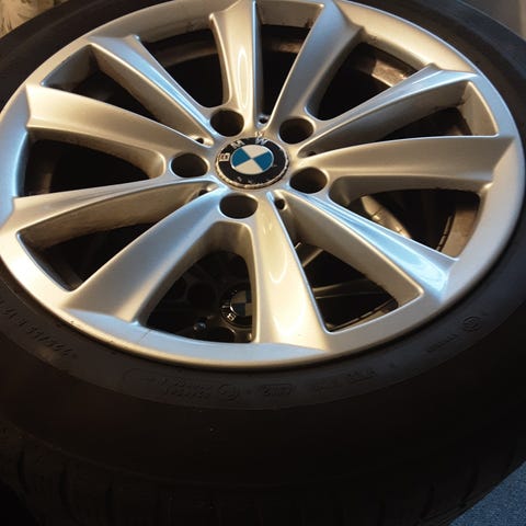 Originale BMW fælge til F11-modellen. Der er 4-5mm slidlag tilbage