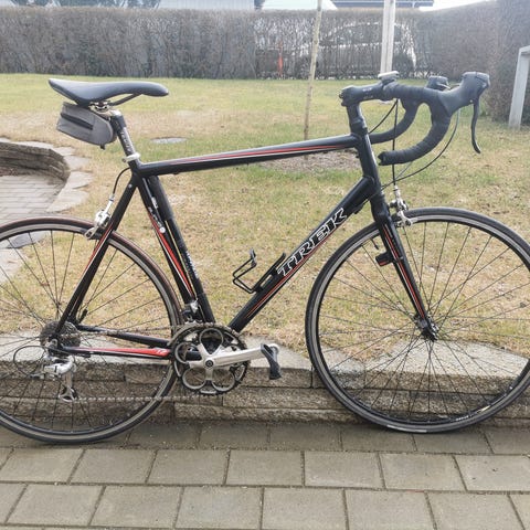 Trek 2 racercykel str. 54 cm med Shimano Claris gear. Har fået påmonteret støtteben, skærme, lås og flaskeholder.