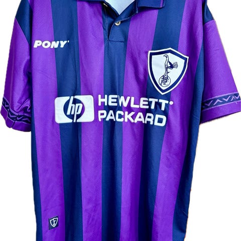 Tottenham målmandstrøje fra 1995. Superfed og ikonisk fra mærket Pony. Størrelsen er en engelsk 30/32 hvilket svarer til en XS eller en stor børnestørrelse (fx 164).