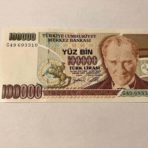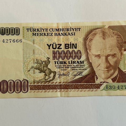 Mustafa Kemal Ataturk 100.000 tyrkisk Lira