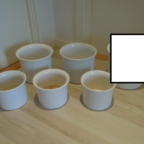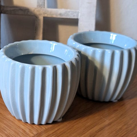 Hvid glaseret porcelæn, 8/11x11cmØ, fine til små sammenplantninger (japansk ikebana), chips eller lign. - 50kr for begge + evt DAO-fragt eller afhentning i Hellerup.