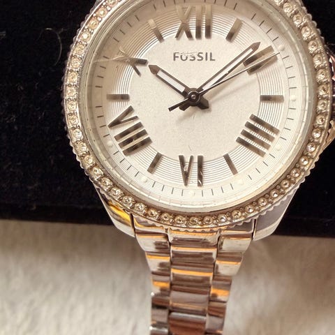 Dameur, andet mærke, SPECIELT DAMEUR FRA STERLING MED BUET GLAS OG RØD URSKIVE.