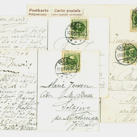 Postkort fra 1979 med frimærkemotiver