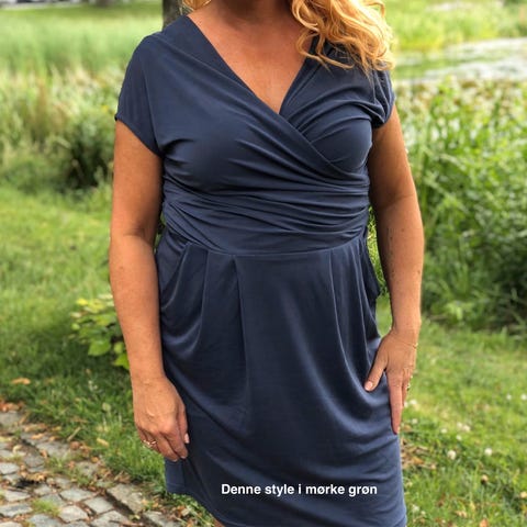 Sød blomstret slåomkjole eller wrap dress. Marineblå bund, hvide blomster. Style Carly. 97% polyester, 3% elastan. Perfekt stand.