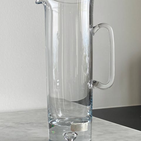 Meget fin glaskande af mærket Krosno. Kan indeholde 0,9 liter. H: 21 cm. B: 10 cm i bunden.