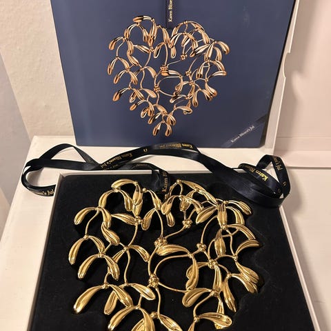 Karen Blixens jul mistelsten, Karen Blixens jul kristjørn fra Rosendahl i original æske samt bånd. Sølv/platin farver.