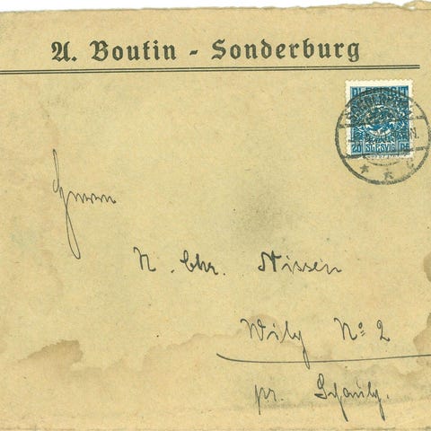 To Plebiscit-helsagsbrevkort. 15 Pf. rødlilla stemplet Tondern 10.4.1920 og sendt til Eichstadt (en varebestilling til J. Johannsen, Osterstrasse 45, Tønder). Desuden helsagsbrevkort 10 Pf. rød afstemplet 9.2.1920 i Niebüll.