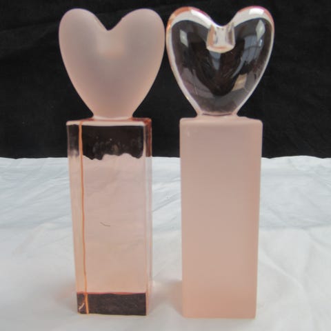 Den ene lysestage er klart glas, den anden er matteret glas.