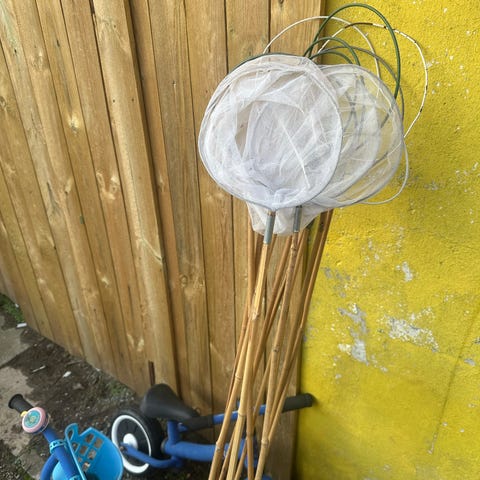 Kæmpe kesse/fangstnet, ca 90 cm i dia og ca. 3 m stang, kan deles i 2.