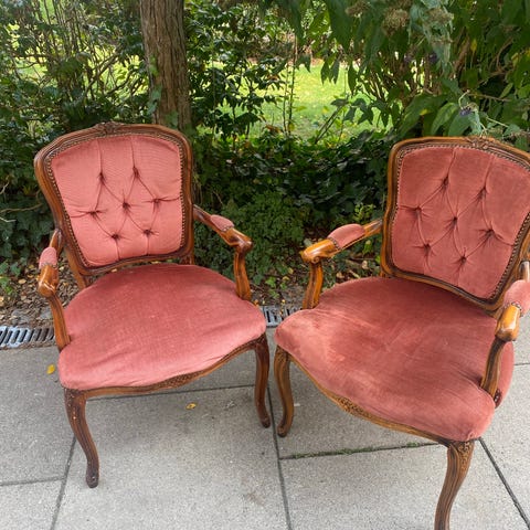 Hele stolens betræk er hånd broderet. Bløde varme nuancer, brun, rosa, sart grøn, hvid mfl