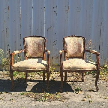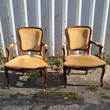 De har brugsspor og polstringen på armlænene er faldet sammen.