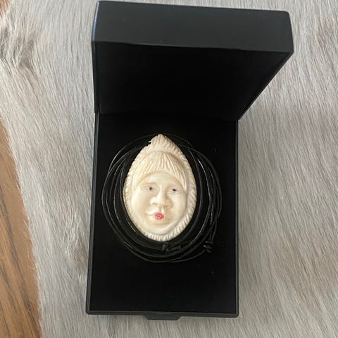 Lavet af Hvalrostand, med to perler.