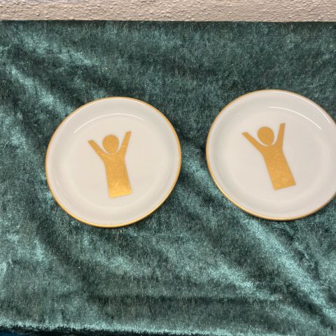 Red barnet, B og G, Lille rund platte/askebægre fra BogG med Red barnet logo og guld kant. Har nr. 337 og en diameter på 9cm. Platten fremstår som ny, uden fejl, mangler eller skår.